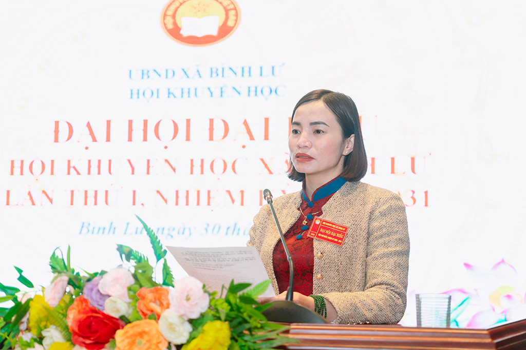 Đại hội đã công bố quyết định thành lập Hội Khuyến học xã Bình Lư, thống nhất điều lệ và mục tiêu hoạt động; đồng thời thảo luận phương hướng, nhiệm vụ nhiệm kỳ 2026 – 2031. Đại hội xác định 9 chỉ tiêu, 14 nhiệm vụ và giải pháp chủ yếu, trong đó phấn đấu 100% chi hội thực hiện sinh hoạt, báo cáo đúng quy định; hằng năm có ít nhất 60% công dân đạt danh hiệu “Công dân học tập”; xây dựng và duy trì xã đạt chuẩn Cộng đồng học tập; quản lý, sử dụng quỹ khuyến học đúng mục đích, công khai, minh bạch.