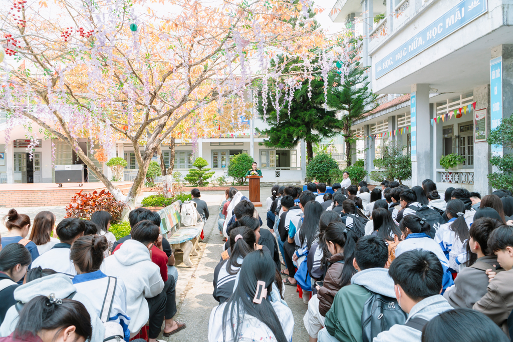 Tại buổi tuyên truyền, các em học sinh được phổ biến những nội dung cơ bản về tuyển sinh đại học, cao đẳng quân sự như: thời gian và điều kiện sơ tuyển, tiêu chuẩn sức khỏe, chính trị, quy trình đăng ký và thẩm tra lý lịch; đồng thời tiếp cận tài liệu Hỏi – Đáp do Ban Tuyển sinh Quân sự Bộ Quốc phòng phát hành.