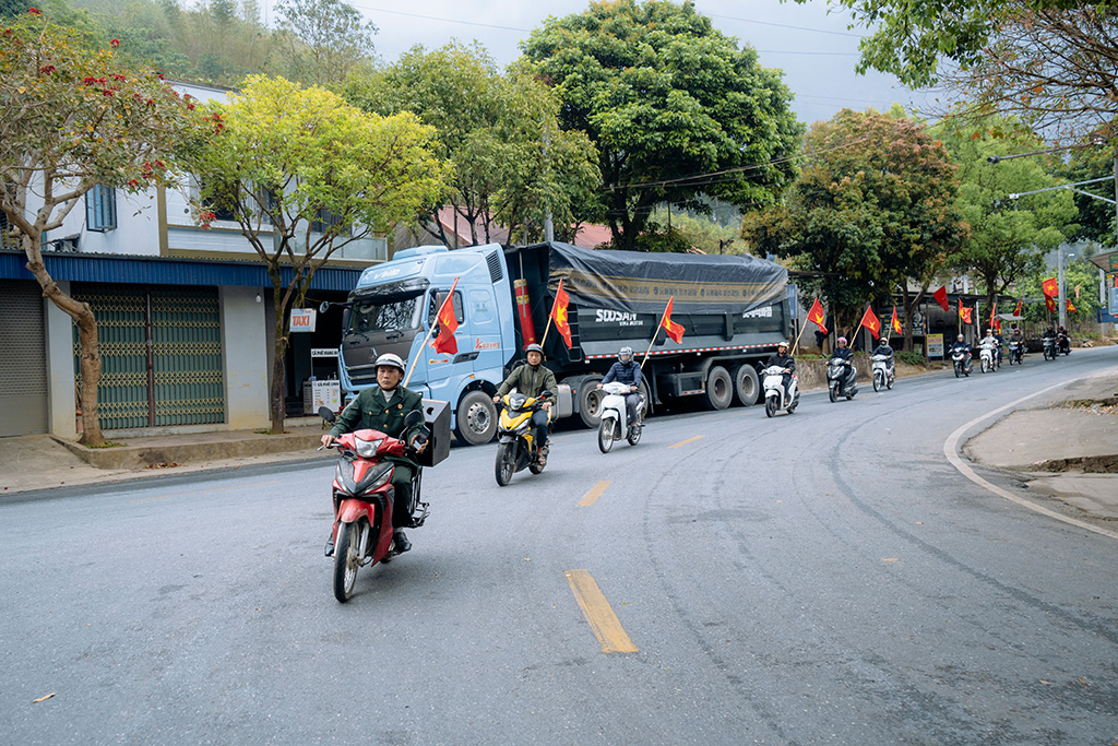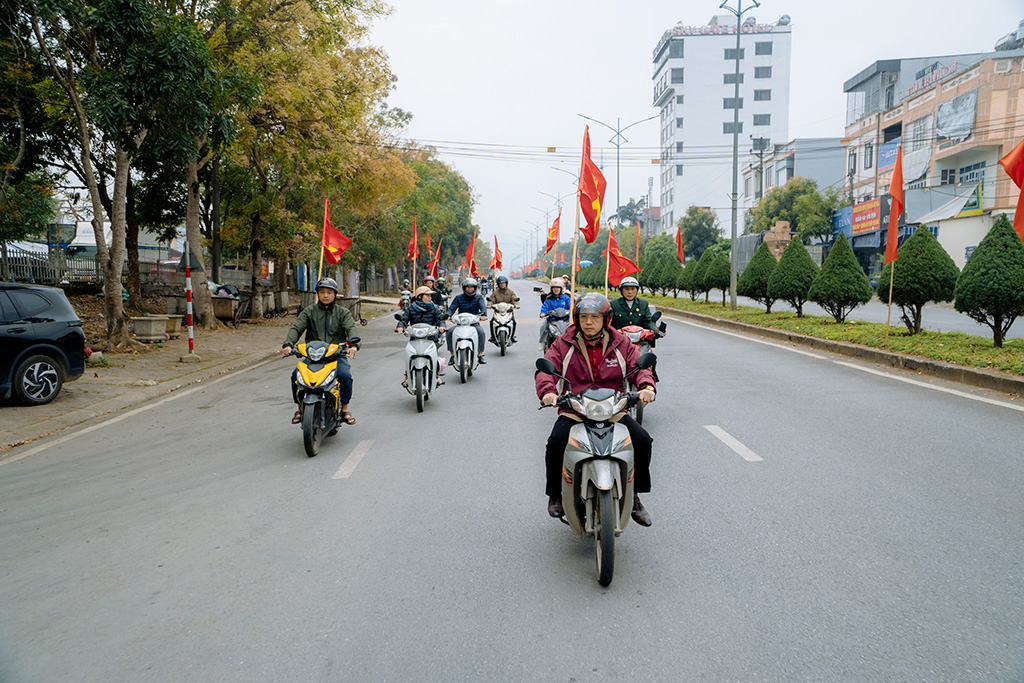 Các lực lượng diễu hành tuyên truyền, cổ động bầu cử trên trục đường trung tâm xã Bình Lư, tạo không khí sôi nổi hướng tới ngày hội toàn dân.