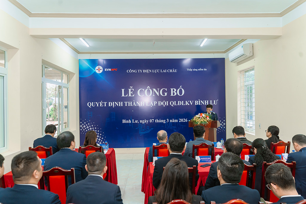 Sáng ngày 7/3, Công ty Điện lực Lai Châu tổ chức Lễ công bố quyết định thành lập Đội Quản lý Điện lực khu vực Bình Lư và trao quyết định giao nhiệm vụ cho Đội trưởng đơn vị. Tham dự buổi lễ có ông Trần Kim Long – Giám đốc Công ty Điện lực Lai Châu, cùng lãnh đạo các phòng ban, đơn vị trực thuộc và đại diện chính quyền các xã Bình Lư, Bản Bo, Khun Há và Tả Lèng.