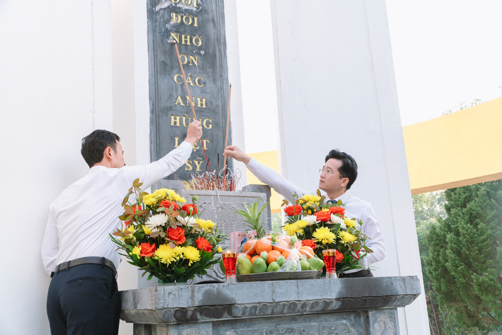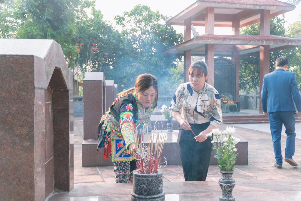 Các đại biểu thắp hương tại các phần mộ liệt sĩ, bày tỏ lòng biết ơn sâu sắc.