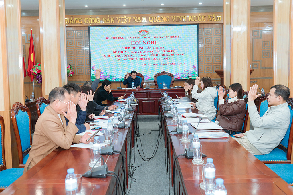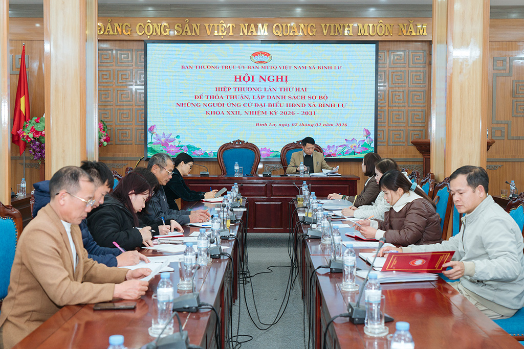 Toàn cảnh Hội nghị hiệp thương lần thứ hai do Ủy ban MTTQ Việt Nam xã Bình Lư tổ chức nhằm thỏa thuận lập danh sách sơ bộ người ứng cử đại biểu HĐND xã khóa XXII, nhiệm kỳ 2026 – 2031.