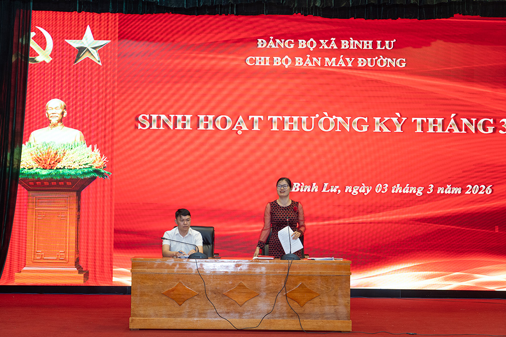 Đồng chí Bí thư Chi bộ bản Máy Đường chủ trì, điều hành buổi sinh hoạt chi bộ thường kỳ tháng 3/2026 theo đúng quy trình, nội dung hướng dẫn của cấp ủy cấp trên.