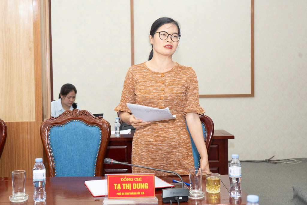 Đồng chí Tạ Thị Dung – Phó Bí thư Thường trực Đảng ủy phát biểu chỉ đạo tại phiên họp.