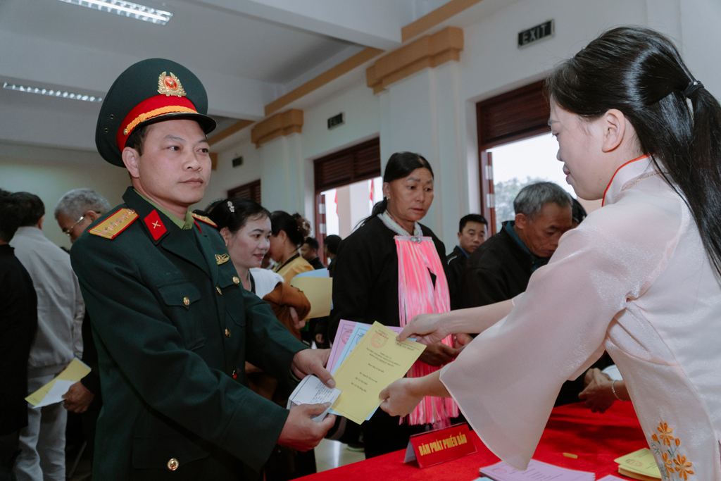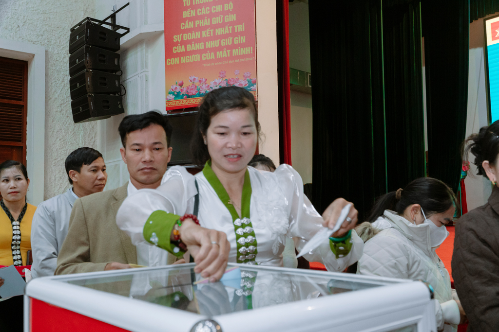 Ngay sau lễ khai mạc, từ 7 giờ sáng, các tổ bầu cử tiến hành phát phiếu, hướng dẫn cử tri nghiên cứu danh sách ứng cử viên, thực hiện ghi phiếu và bỏ phiếu theo nguyên tắc trực tiếp, bỏ phiếu kín. Toàn xã có 11 đơn vị bầu cử, 14 tổ bầu cử với tổng số 10.782 cử tri. Công tác tổ chức được triển khai bài bản, đúng quy trình, tạo điều kiện thuận lợi để cử tri tham gia bầu cử.