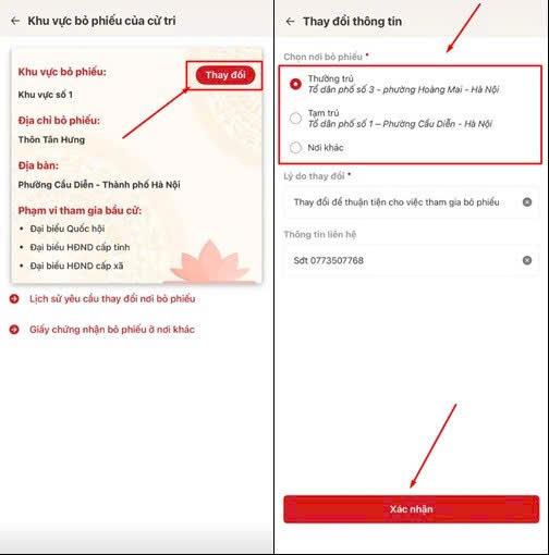 Đối với trường hợp lựa chọn thay đổi nơi bỏ phiếu giữa nơi thường trú và nơi tạm trú thì có thể tạo yêu cầu trước 24 giờ trước thời điểm bầu cử (tức trước 7h ngày 14/3).