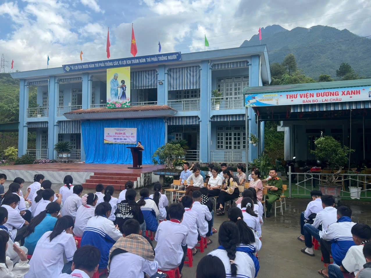 Quang cảnh buổi tuyên truyền tại trường THCS Bản Bo