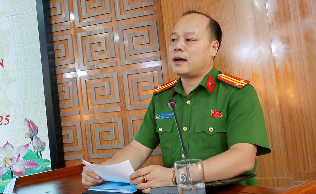Trung tá Cầm Văn Thắng - Trưởng Công an xã Bình Lư phát biểu tại hội nghị.
