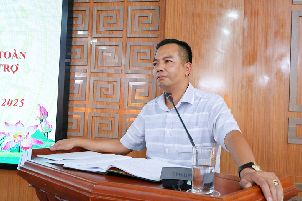 Đồng chí Lương Việt Thảo – P.Bí thư Đảng ủy, Chủ tịch UBND xã Bình Lư phát biểu tại hội nghị