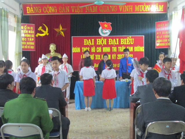 Các cháu thiếu niên- nhi đồng đến chúc mừng Đại hội