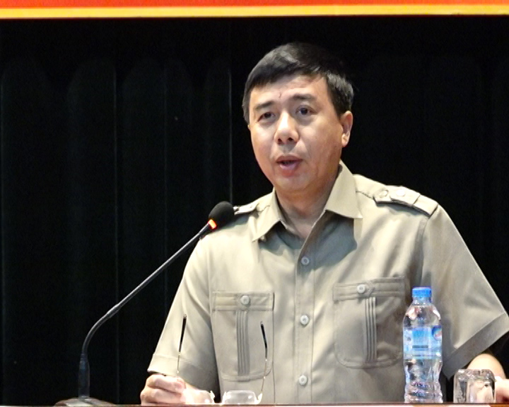 Đ/c Hoàng Thọ Trung - Bí thư huyện ủy Tam Đường đang quán triệt Chỉ thị số 12 của Bộ Chính trị.