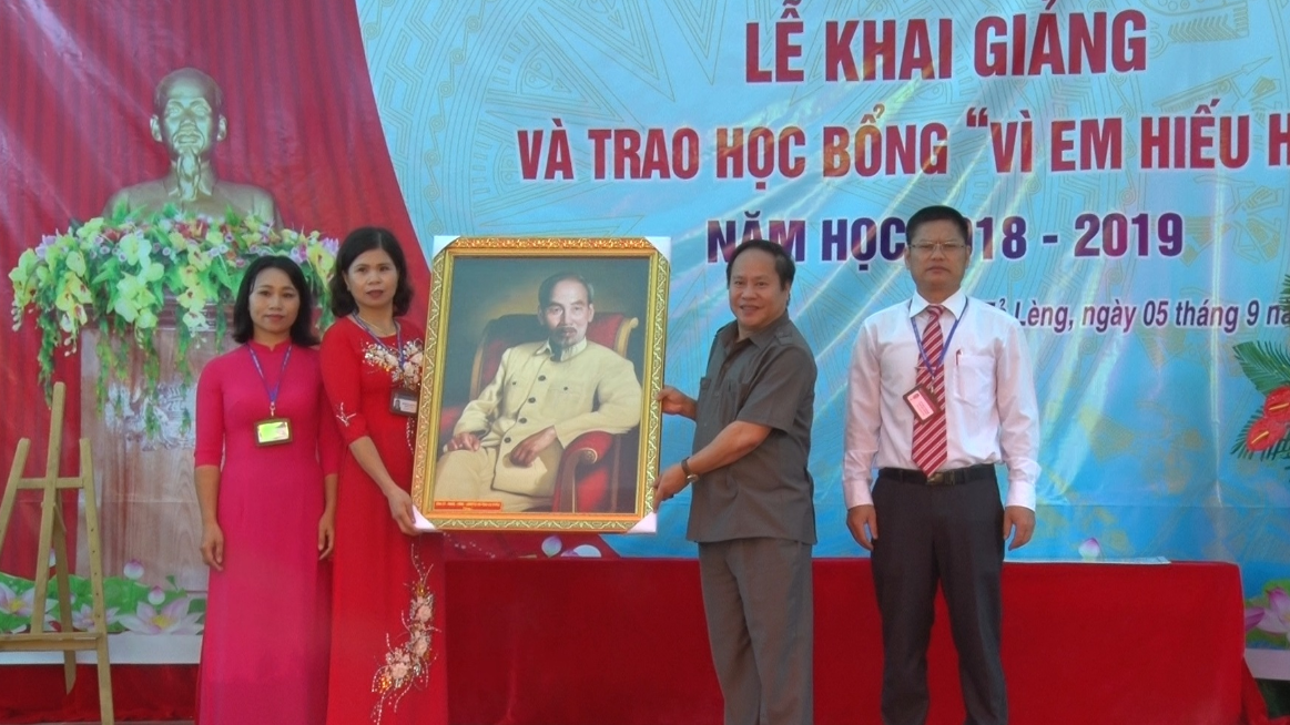 Đ/c Tống Thanh Hải tặng – UVBTV Tỉnh ủy, P.Chủ tịch thường trực UBND tỉnh tặng ảnh chân dung Chủ tịch Hồ Chí Minh cho tập thể Ban giám hiệu nhà trường.