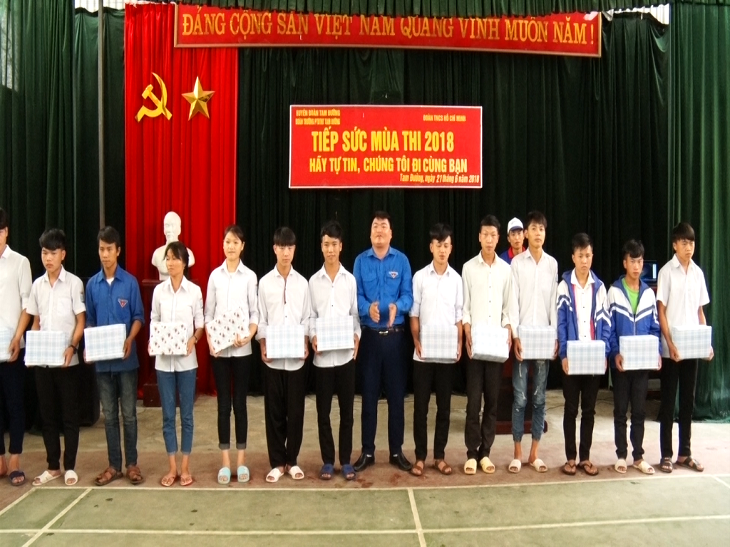 Kỳ thi THPT quốc gia 2018, huyện Tam Đường có 239 thí sinh gồm: trường THPT Bình Lư 164 em; trường Phổ thông Dân tộc nội trú huyện 52 em; Trung tâm Giáo dục nghề nghiệp – Giáo dục thường xuyên có 13 học viên và 10 thí sinh tự do. Tại chương trình “tiếp sức mùa thi” các anh, chị tình nguyện viên đã lắng nghe tâm tư, nguyện vọng; chia sẻ những khó khăn vướng mắc của các em học sinh. Đồng thời động viên, khích lệ tinh thần các em, giúp các em thêm vững tin bước vào kỳ thi tốt nghiệp đạt kết quả cao nhất. Nhân dịp này, huyện Đoàn Tam Đường đã tặng 13 xuất quà cho các em học sinh có hoàn cảnh đặc biệt khó khăn của huyện tham gia kỳ thi tốt nghiệp THPT Quốc gia năm 2018.