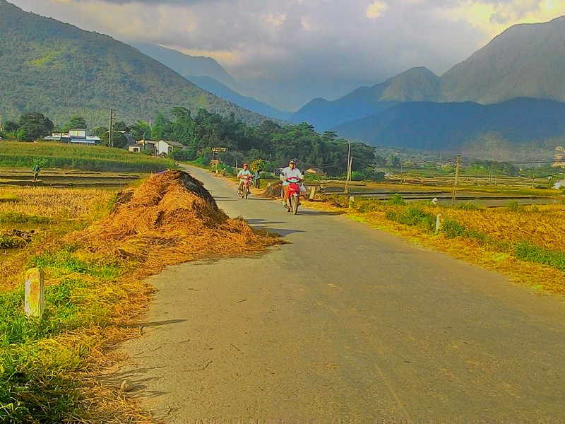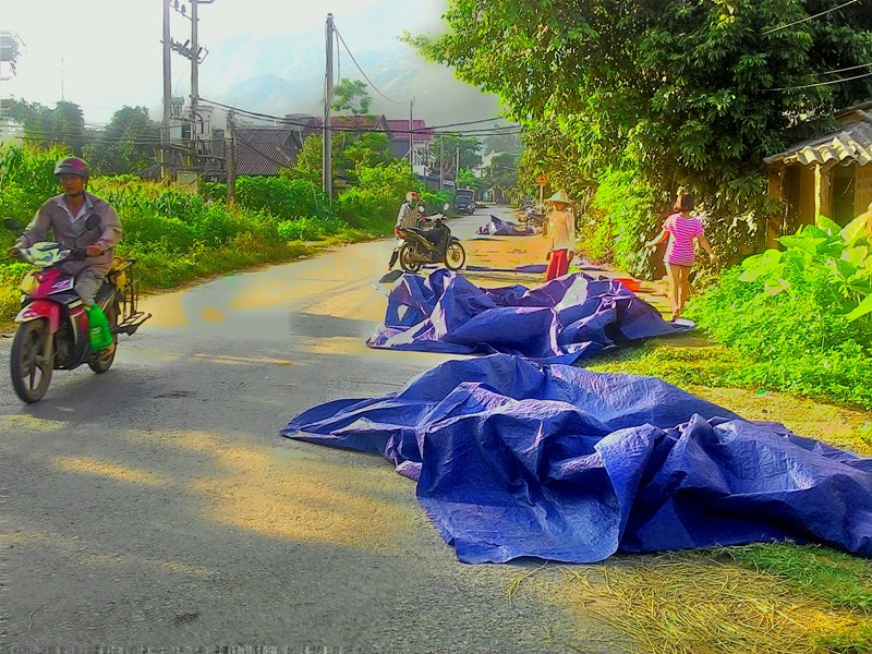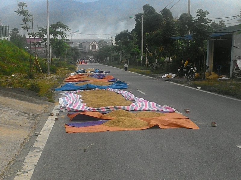 Theo quan sát của chúng tôi, dọc theo các tuyến đường quốc lộ, tỉnh lộ, đường liên thôn, bản và các tuyến đường nội huyện, chúng tôi dễ dàng bắt gặp hình ảnh người nông dân “vô tư” tuốt lúa, phơi rơm, phơi thóc ngay trên mặt đường quốc lộ, trong khi có khá nhiều phương tiện lưu thông qua tuyến này, rất nhiều đoạn đường người dân chiếm gần hết ½ lòng đường để phơi thóc, lúa. Khi bắt gặp những tình trạng trên, các phương tiện tham gia giao thông không còn cách nào khác phải đi ra giữa đường hoặc lấn sang phần đường ngược chiều. Thậm chí, có những đoạn người dân còn vun rơm thành đống cao ngay trên mặt đường, không những làm hẹp diện tích lưu thông của các phương tiện mà còn che khuất tầm nhìn, tiềm ẩn nguy cơ xảy ra tai nạn giao thông nếu không chú ý quan sát. Tuy chưa xảy ra vụ tai nạn giao thông nghiêm trọng nào liên quan đến việc phơi rơm rạ và thóc lúa trên đường, nhưng những việc làm này nếu không được giải quyết triệt để sẽ tiềm ẩn nguy cơ mất an toàn giao thông là rất cao.