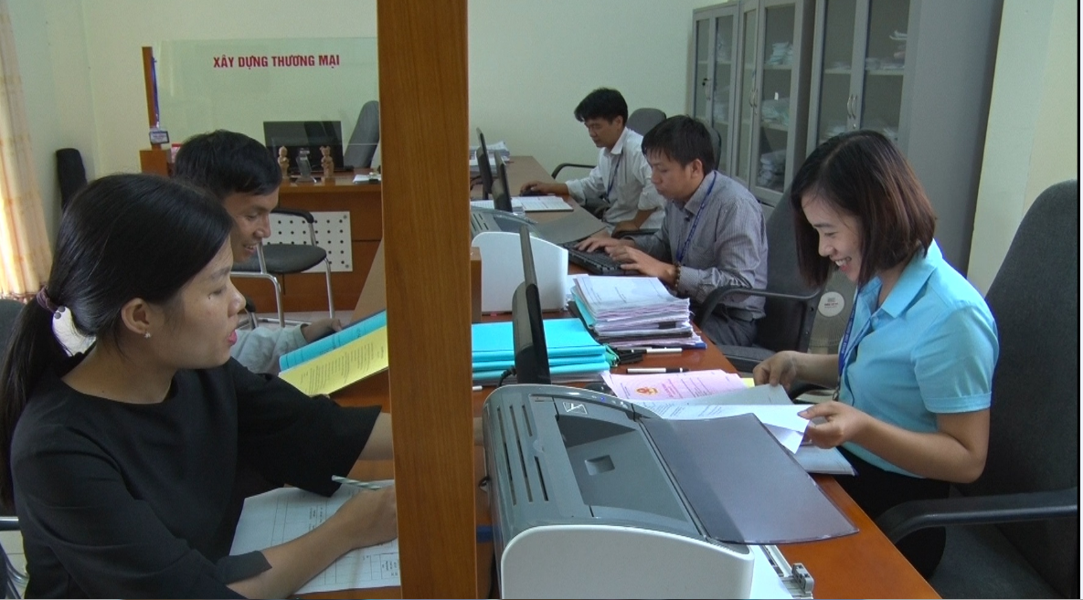 Cán bộ giao dịch Bộ phận “Một cửa” UBND huyện Tam Đường niềm nở, nhiệt tình hướng dẫn, giải quyết thủ tục cho người dân