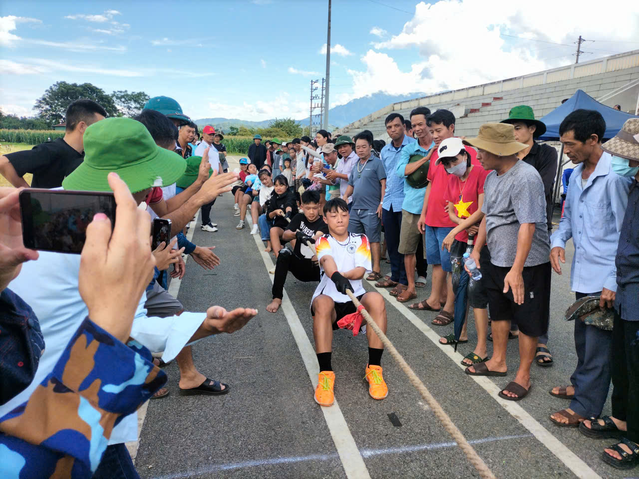Cuộc thi kéo co diễn ra đầy kịch tính, thể hiện tinh thần đoàn kết và sức mạnh của các đội thi nhỏ tuổi.