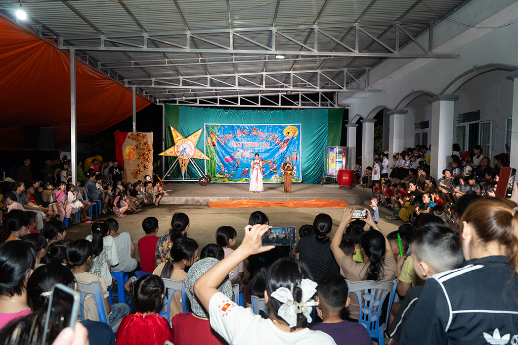 Phần văn nghệ khai mạc mở đầu bằng màn múa lân đặc sắc, cùng sự xuất hiện dí dỏm của chú Cuội và chị Hằng đã mang đến niềm vui, tiếng cười cho các em nhỏ. Ngoài ra, chương trình còn có phần trò chơi đố vui có thưởng, giúp các em giao lưu, rèn luyện sự nhanh trí, đồng thời khơi dậy nét đẹp truyền thống của Tết Trung thu.