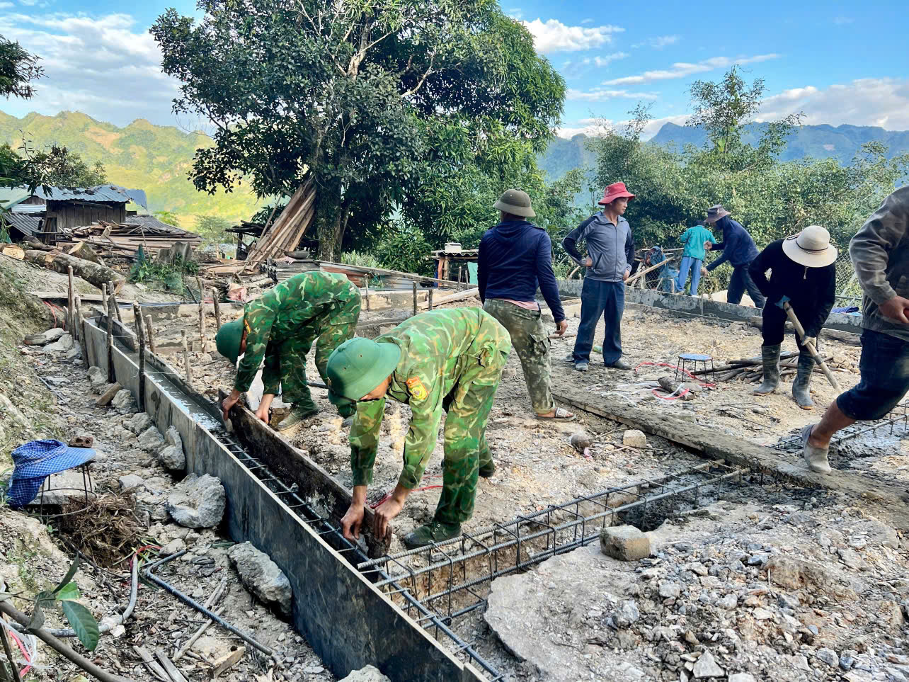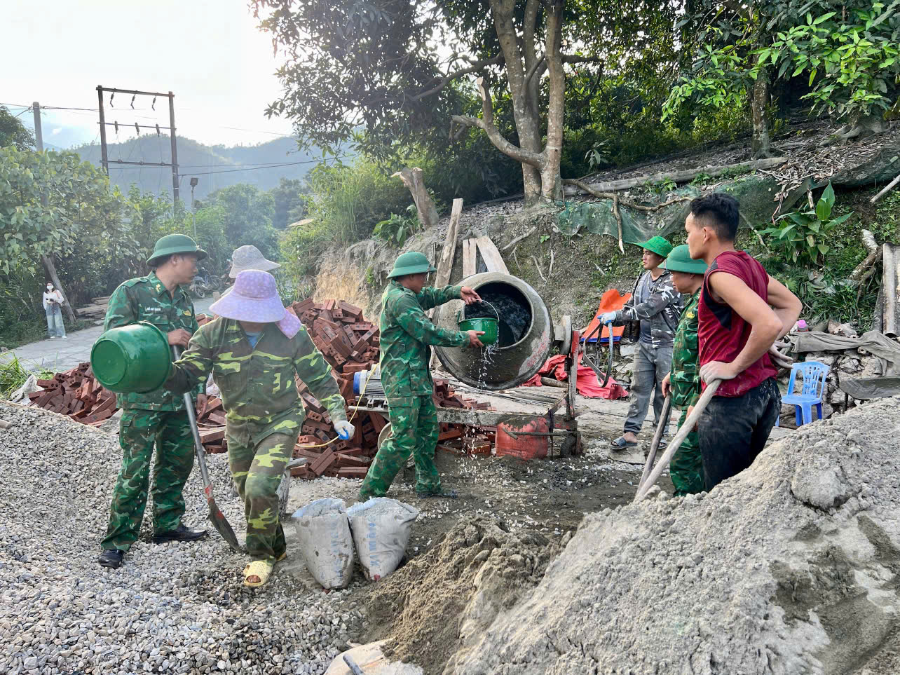 Lực lượng bộ đội, dân quân giúp người dân xóa nhà tạm