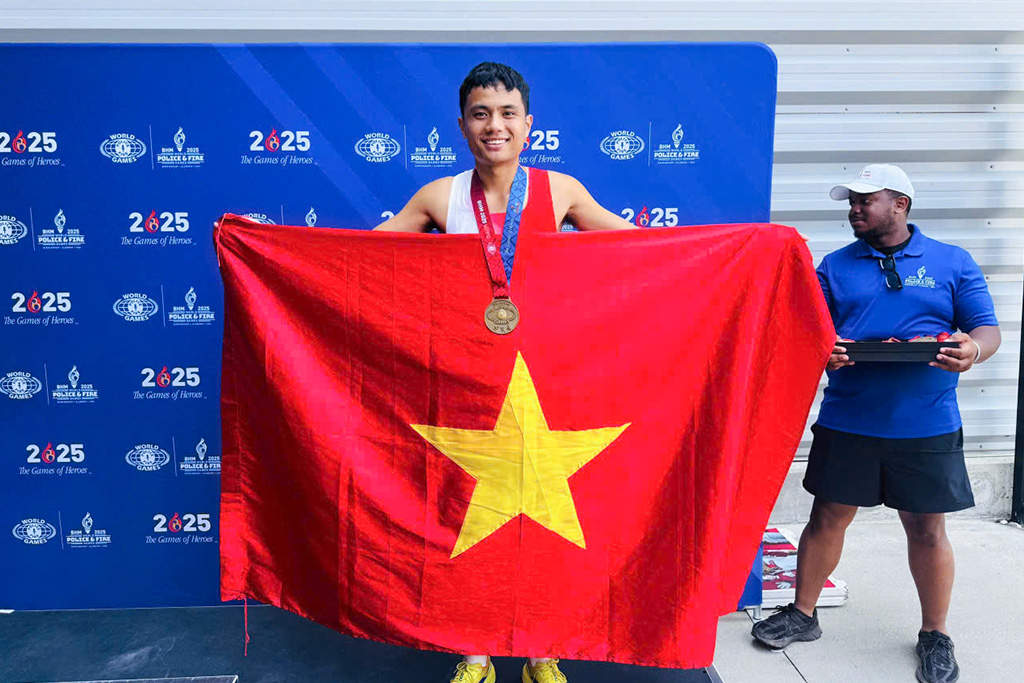 Thành viên Lò Bảo Tâm của CLB Tam Đường runner giành huy chương đồng nội dung Half Marathon tại Đại hội Thể thao Cảnh sát và Cứu hỏa Thế giới 2025.