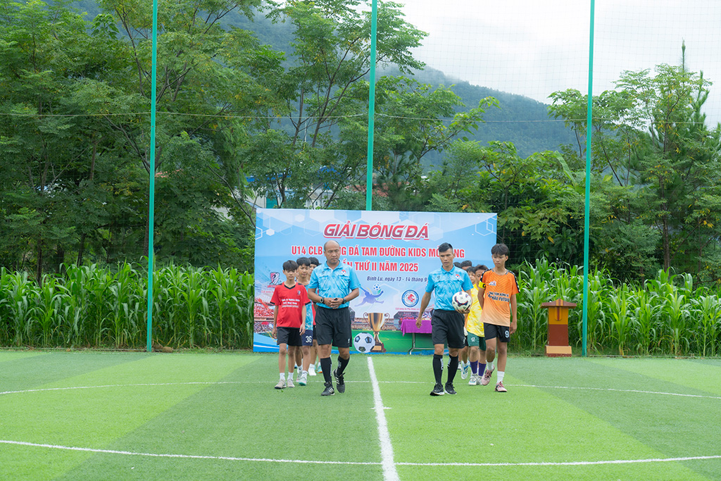 Trận đấu khai mạc giải đấu giữ CLB Bóng đá Tam Đường Kids (áo đỏ) và FC Cuội (áo cam).