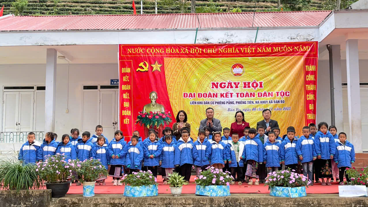Nhân dịp này, đồng chí Giàng A Tính - Phó Chủ tịch UBND tỉnh đã tặng quà động viên cho đại diện 3 bản; trao áo ấm cho 70 học sinh trên địa bàn. Xã Bản Bo tặng danh hiệu Bản văn hóa năm 2025 cho bản Phiêng Pẳng; Chủ tịch UBND xã tặng Giấy khen cho 4 hộ gia đình có thành tích xuất sắc trong phong trào “Toàn dân đoàn kết xây dựng đời sống văn hóa” năm 2025 của 3 bản: Phiêng Pẳng - Phiêng Tiên - Nà Khuy.