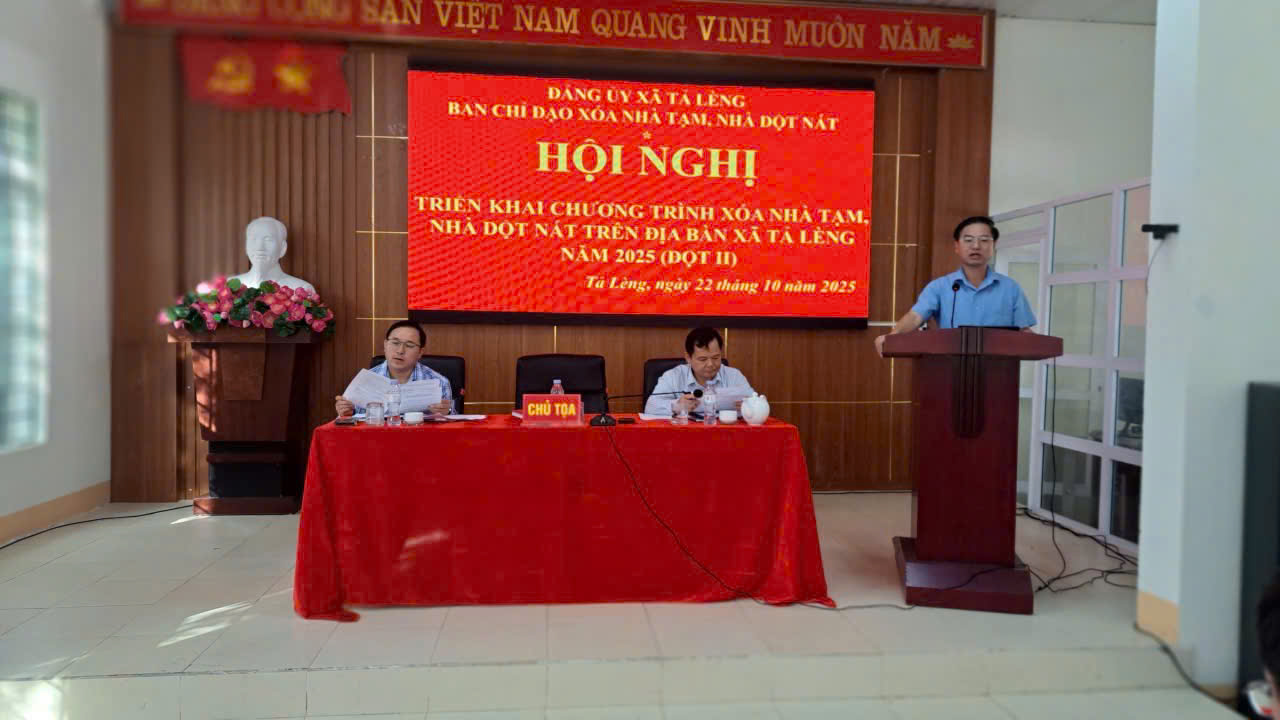 Chiều ngày 22/10/2025, Ban Chỉ đạo Chương trình xóa nhà tạm, nhà dột nát xã Tả Lèng tổ chức Hội nghị triển khai thực hiện Đợt 2 năm 2025. Dự và đồng chủ trì Hội nghị có các đồng chí: Hoàng Văn Trinh – Bí thư Đảng ủy, Chủ tịch HĐND xã; Giàng A Thanh – Phó Bí thư Thường trực Đảng ủy; Phong Vĩnh Cường – Phó Bí thư, Chủ tịch UBND xã.