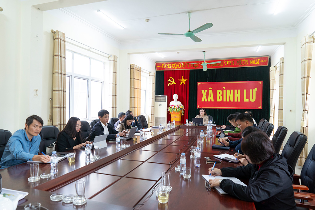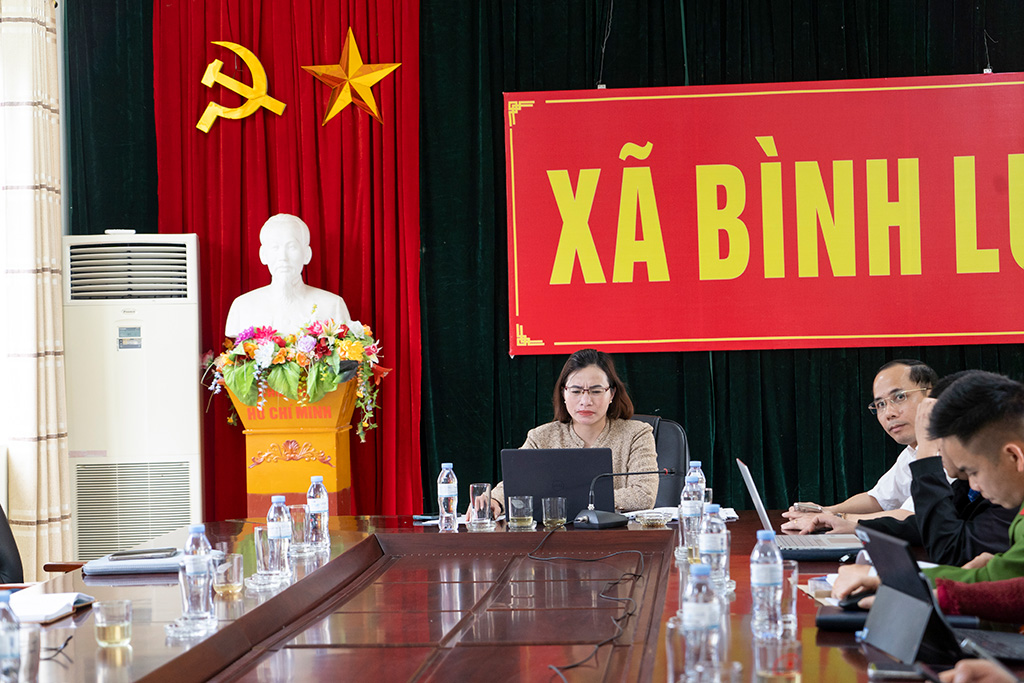 Đồng chí Nguyễn Thị Nhàn – P.Chủ tịch UBND xã Bình Lư chủ trì tại điểm cầu xã Bình Lư.