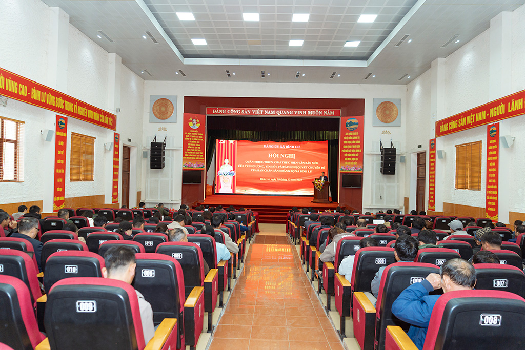Chiều ngày 9/12, Đảng ủy xã Bình Lư tổ chức Hội nghị quán triệt, triển khai các văn bản mới của Trung ương, Tỉnh ủy và các Nghị quyết chuyên đề của Ban Chấp hành Đảng bộ xã Bình Lư. Dự hội nghị có đồng chí Nguyễn Tiến Thịnh – Tỉnh ủy viên, Bí thư Đảng ủy, Chủ tịch HĐND xã; đồng chí Tạ Thị Dung – Phó Bí thư Thường trực Đảng ủy; cùng lãnh đạo HĐND, UBND xã và các đại biểu là cán bộ, đảng viên trên địa bàn.