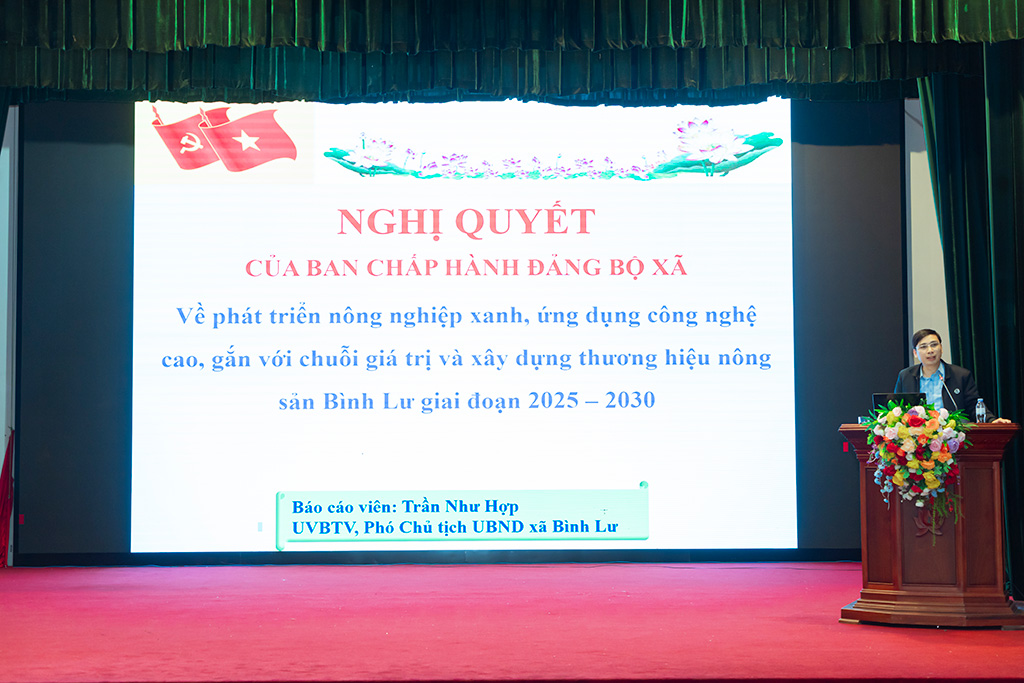Tại hội nghị, các đại biểu đã được quán triệt những nội dung trọng tâm của các văn bản mới, gồm: Kết luận số 204-KL/TW của Ban Bí thư về công tác đối với đạo Tin lành; Chương trình hành động số 01-CTr/TU của Ban Chấp hành Đảng bộ tỉnh Lai Châu thực hiện Nghị quyết Đại hội Đảng bộ tỉnh lần thứ XV; Kế hoạch số 38-KH/ĐU của Đảng bộ xã về triển khai Chương trình hành động của Tỉnh ủy; cùng các nghị quyết chuyên đề quan trọng của Đảng bộ xã như: phát triển du lịch – dịch vụ, chuyển đổi số toàn diện, phát triển nông nghiệp xanh ứng dụng công nghệ cao, xây dựng xã Bình Lư không ma túy, và Kết luận số 219-KL/TW của Bộ Chính trị về phát triển nông nghiệp, nông dân, nông thôn.