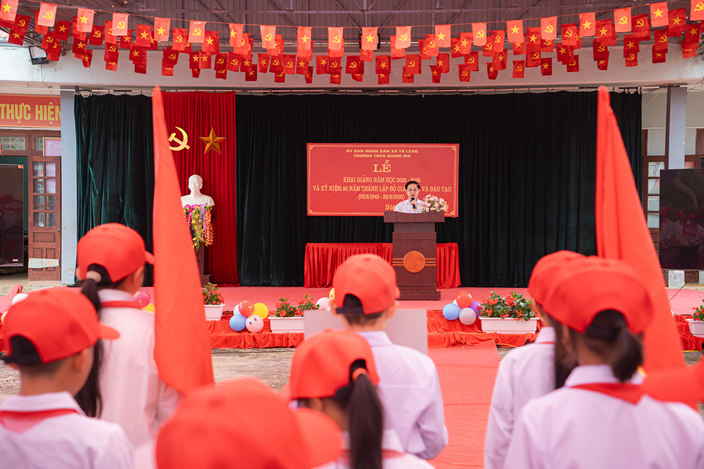 Đồng chí Hoàng Văn Trinh – Bí thư Đảng ủy, Chủ tịch HĐND xã Tả Lèng đọc thư của Chủ tịch nước Lương Cường gửi ngành Giáo dục nhân dịp khai giảng năm học 2025-2026.