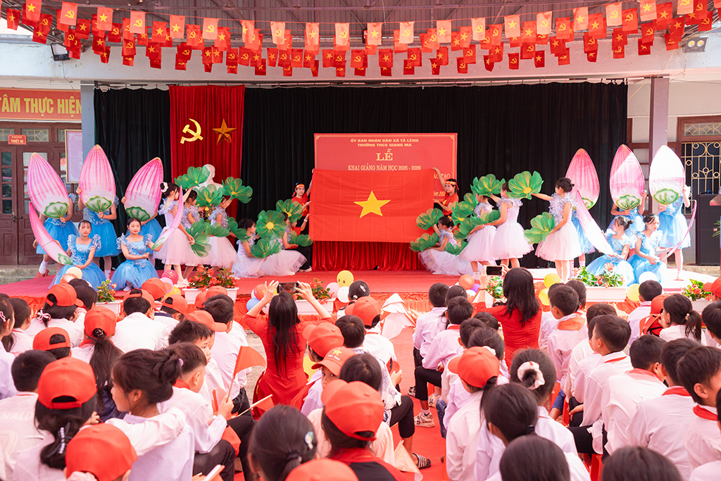 Tiết mục văn nghệ tại Lễ khai giảng của các em học sinh trường THCS Giang Ma.