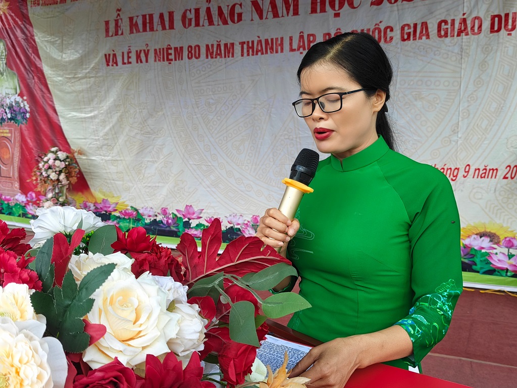 Tại buổi Lễ khai giảng, thừa ủy quyền của Chủ tịch nước, đc Tạ Thị Dung - Phó Bí thư Thường trực Đảng ủy xã đã trang trọng đọc thư của Chủ tịch nước Lương Cường gửi ngành giáo dục nhân dịp khai giảng năm học mới.