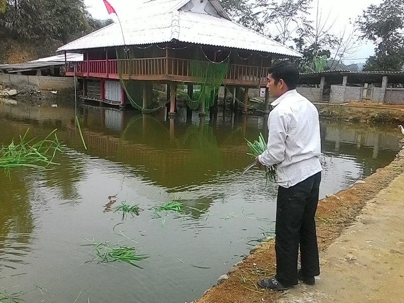 2 ao cá mỗi năm cho thu từ 5 - 6 tạ cá thịt. Ngoài ra, gia đình anh còn chăn nuôi thêm 30 đến 40 con gia cầm, 2.000m