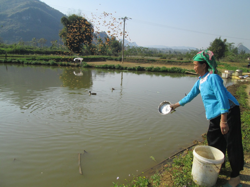 Để có sẵn nguồn thức ăn cho cá, chị Trám trồng cỏ voi, chuối, sắn và nấu rượi để lấy bỗng … Nhờ chăm sóc tốt, cá ít dịch bệnh, sinh trưởng và phát triển tốt, cuối năm 2014, chị Trám thu hoạch được trên 3 tấn cá thương phẩm bán ra thị trường và thu về trên 200 triệu đồng.