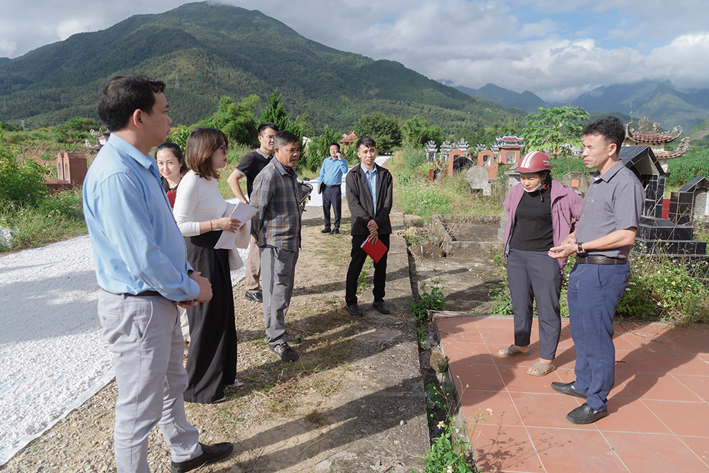 Đoàn công tác giám sát tại bản Km2 về công tác quản lý nghĩa trang.