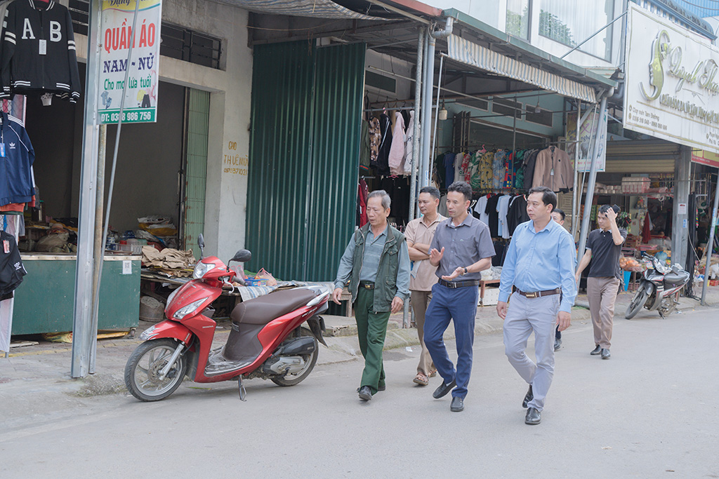 Đoàn công tác kiểm tra thực tế tại khu vực chợ Trung tâm (mới).