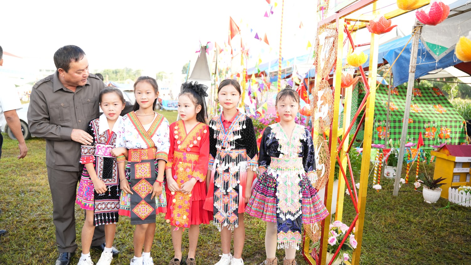 Đồng chí Giàng A Tính – Phó Chủ tịch UBND tỉnh động viên các cháu thiếu niên, nhi đồng xã Bình Lư luôn chăm ngoan, học giỏi