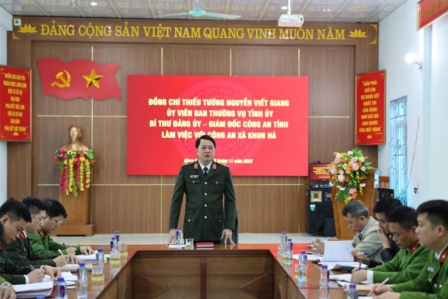 Phát biểu chỉ đạo, Thiếu tướng Nguyễn Viết Giang – Giám đốc Công an tỉnh Lai Châu ghi nhận và biểu dương tinh thần trách nhiệm, sự chủ động, nỗ lực của Đảng ủy, chính quyền và lực lượng Công an xã Khun Há; đồng thời yêu cầu tiếp tục phát huy hiệu quả các mô hình tự quản, tăng cường tuyên truyền pháp luật, phát huy vai trò người có uy tín và phối hợp chặt chẽ với các đơn vị chức năng nhằm giữ vững an ninh nông thôn, góp phần xây dựng Khun Há bình yên, phát triển.