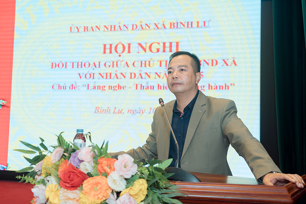Đồng chí Lương Việt Thảo – Chủ tịch UBND xã đã trực tiếp trả lời, làm rõ từng nội dung, chỉ đạo các cơ quan chuyên môn rà soát, xử lý từng vấn đề mà cử tri và nhân dân quan tâm. Đồng chí nhấn mạnh: “Chính quyền xã Bình Lư luôn lắng nghe, thấu hiểu và đồng hành cùng nhân dân, coi sự hài lòng và niềm tin của nhân dân là thước đo hiệu quả hoạt động của bộ máy chính quyền.”