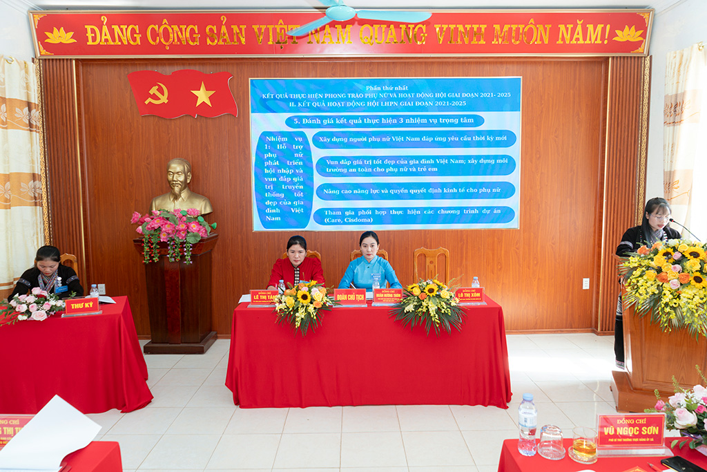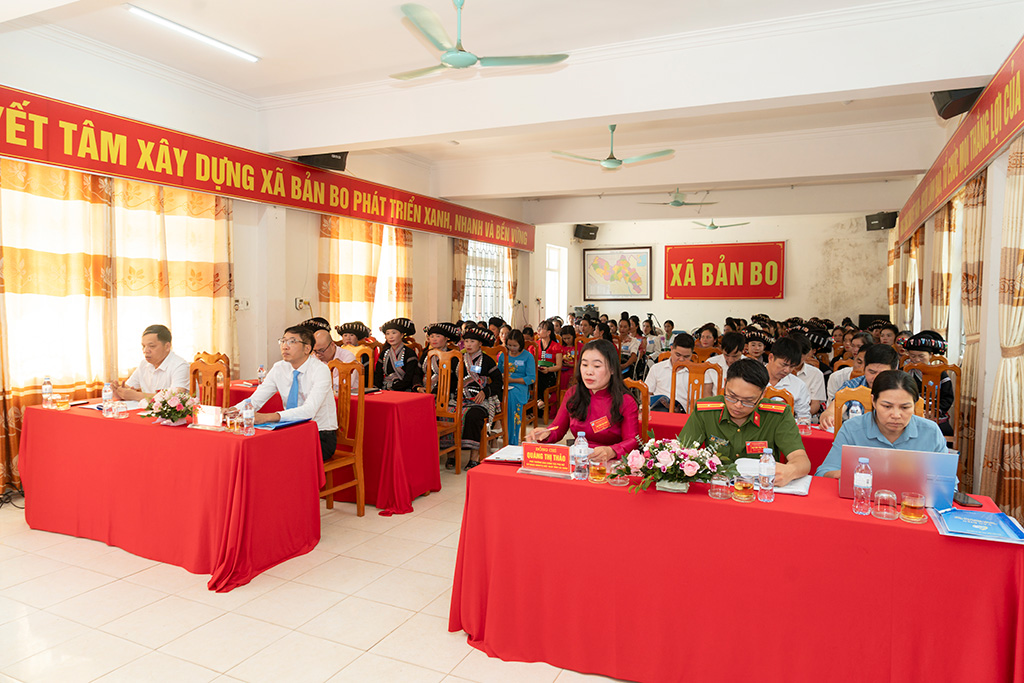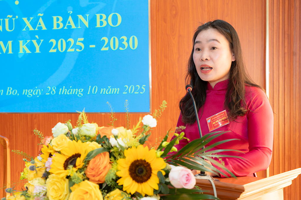 Phát biểu chỉ đạo tại Đại hội, đồng chí Quàng Thị Thảo – Phó Trưởng Ban Công tác Phụ nữ, Ủy ban MTTQ Việt Nam tỉnh Lai Châu và đồng chí Vũ Ngọc Sơn – Phó Bí thư Thường trực Đảng ủy xã Bản Bo ghi nhận và biểu dương những kết quả Hội Liên hiệp Phụ nữ xã đạt được trong thời gian qua; đồng thời đề nghị trong nhiệm kỳ tới, Hội cần tiếp tục đổi mới nội dung, phương thức hoạt động, hướng mạnh về cơ sở; đẩy mạnh tuyên truyền, vận động hội viên tích cực phát triển kinh tế, xây dựng gia đình no ấm, tiến bộ, hạnh phúc; góp phần thực hiện thắng lợi các mục tiêu phát triển kinh tế – xã hội của địa phương.