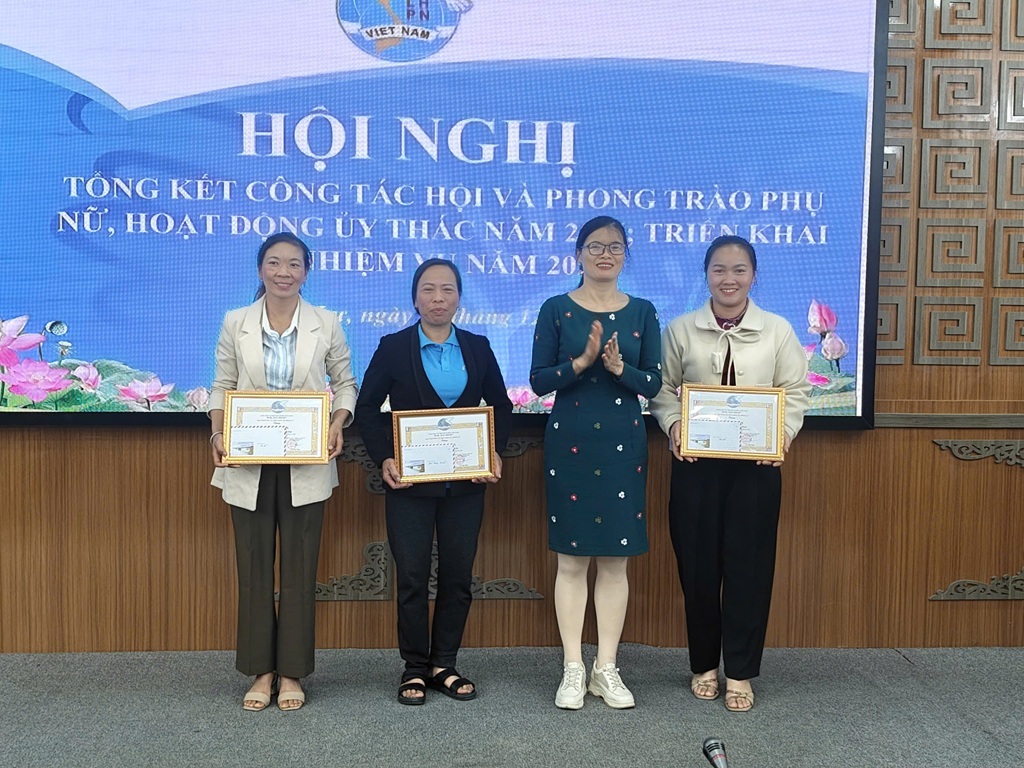 Đ/c Lò Thị Thủy - Chủ tịch Hội LHPN xã trao giấy khen cho các cá nhân có thành tích xuất sắc trong công tác Hội năm 2025.