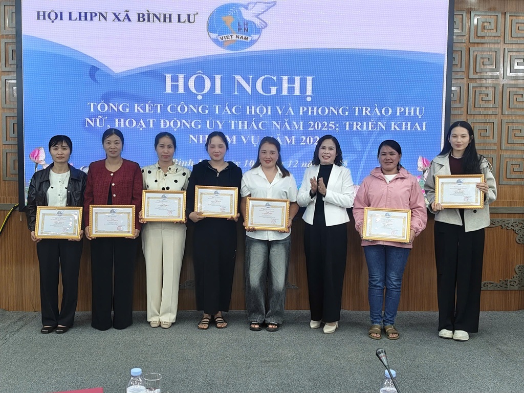Nhân dịp này, Hội LHPN xã Bình Lư đã trao giấy khen cho 3 tập thể và 17 cá nhân có thành tích xuất sắc trong công tác Hội và hoạt động ủy thác năm 2025.