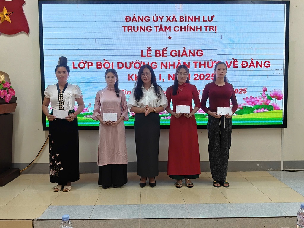 Kết thúc khóa bồi dưỡng, trên cơ sở bài thu hoạch, Trung tâm Chính trị Bình Lư đã đánh giá cao tinh thần học tập và tiếp thu của các học viên, qua đó 100% học viên được cấp giấy chứng nhận hoàn thành khóa học, trong đó có 28 học viên đạt thành tích khá, giỏi, xuất sắc, chiếm 68,3% tổng số học viên. Cũng tại buổi lễ, Trung tâm Chính trị Bình Lư đã biểu dương và khen thưởng cho 4 học viên có thành tích học tập và hoạt động xuất sắc trong suốt quá trình tham gia lớp bồi dưỡng.