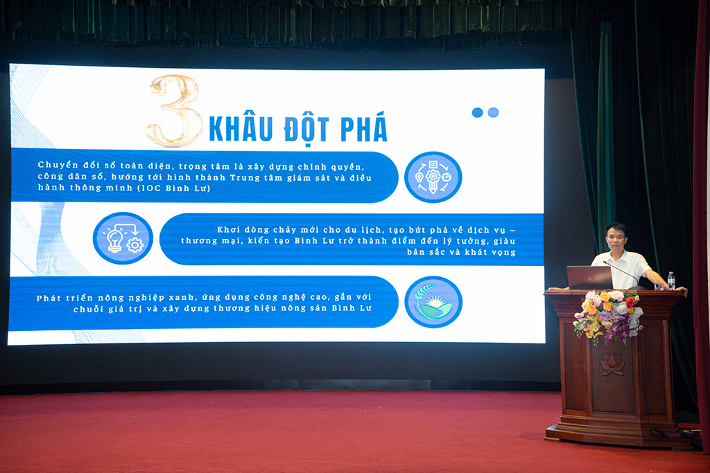 Đại hội cũng đề ra ba khâu đột phá gồm: đẩy mạnh chuyển đổi số toàn diện, hình thành Trung tâm giám sát điều hành thông minh (IOC Bình Lư); phát triển du lịch giàu bản sắc, tạo bứt phá dịch vụ – thương mại; phát triển nông nghiệp xanh, công nghệ cao gắn với chuỗi giá trị và xây dựng thương hiệu nông sản Bình Lư. Cùng với đó, có ba nghị quyết chuyên đề về: chuyển đổi số; phát triển du lịch; phát triển nông nghiệp xanh, công nghệ cao giai đoạn 2025 – 2030; cùng sáu giải pháp trọng tâm nhằm huy động sức mạnh tổng hợp, xây dựng Bình Lư phát triển toàn diện.