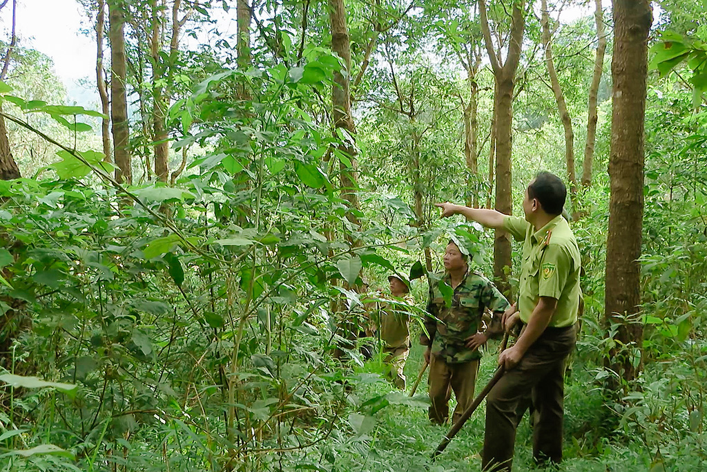 Cán bộ Hạt Kiểm lâm Tam Đường và người dân tuần tra, kiểm tra rừng.