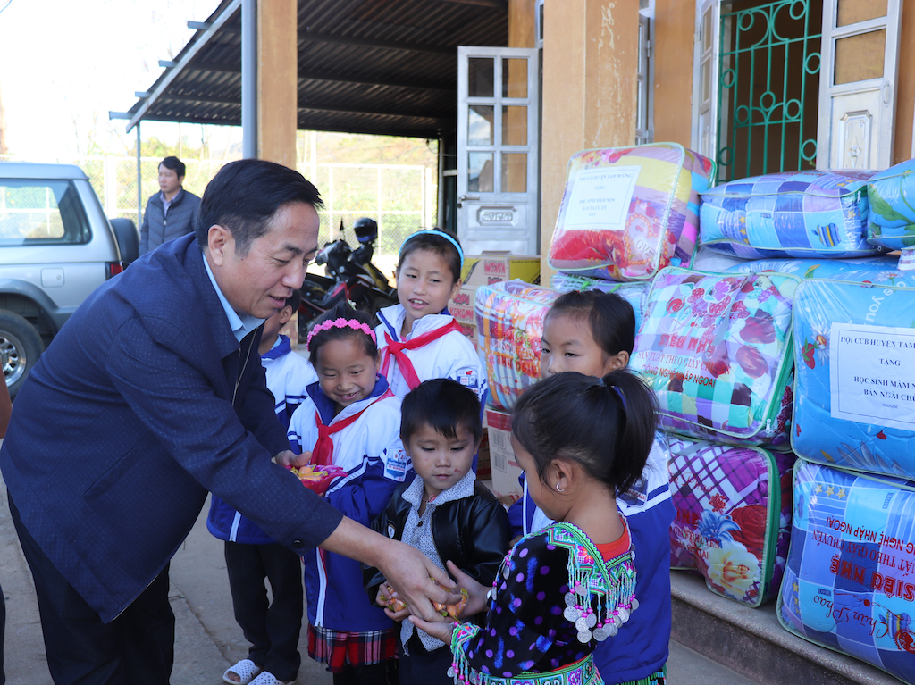 Đến thăm và tặng quà cho các cháu, các đồng chí trong đoàn đã ân cần thăm hỏi, động viên tới tập thể cô và trò nhà trường. Nhân dịp này, Hội CCB Tam Đường đã trao tặng 20 bộ chăn ấm; 80 đôi giày, dép mới; 14 bao quần áo; 40 cặp lồng; 50 chiếc mũ và 50 gói cháo với tổng trị giá trên 10 triệu đồng. Được biết, Bản Tả Cu Tỉ và Ngài Chù là 2 bản có tỉ lệ hộ nghèo còn rất cao của xã Giang Ma, điều kiện kinh tế và cơ sở vật chất còn nhiều khó khăn. Đây thực sự là món quà đầy ý nghĩa đối với cô và trò nhà trường, cùng mong muốn chung tay giúp đỡ giáo viên và học sinh nơi đây phần nào vơi bớt đi những khó khăn, qua đó nỗ lực vươn lên trong công tác dạy và học ngày càng tốt hơn.