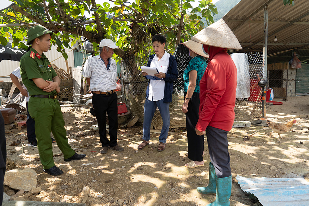 Qua kiểm tra thực tế tại hộ ông Đào Xuân Cường (bản Thống Nhất), gia đình đã được cấp Giấy chứng nhận quyền sử dụng đất với diện tích 196,5 m² (thửa đất số 1.461, tờ bản đồ số 73). Tuy nhiên, hộ gia đình đã xây dựng công trình lấn chiếm đất công gồm: nhà tắm có diện tích 2,4m x 1,7m; chuồng nuôi gà nền bê tông, mái lợp pro xi măng, quây lưới B40 diện tích 9,3m x 5,8m.