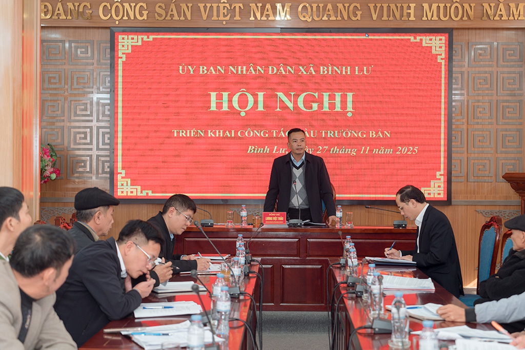 Sáng ngày 27/11, UBND xã Bình Lư tổ chức Hội nghị triển khai công tác bầu Trưởng bản nhiệm kỳ 2025 – 2027. Đồng chí Lương Việt Thảo – Chủ tịch UBND xã dự và chủ trì hội nghị. Tham dự còn có lãnh đạo Phòng Kinh tế, Phòng Văn hóa – Xã hội và cùng lãnh đạo các bản trên địa bàn xã.