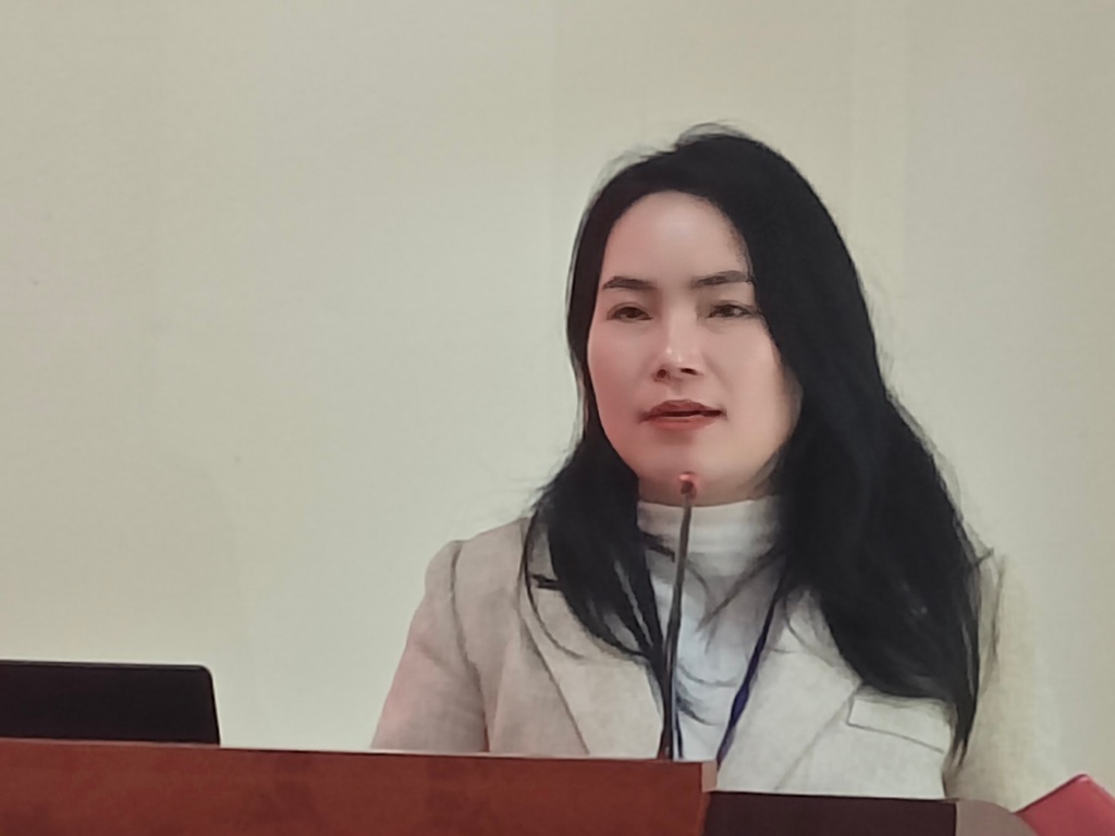 Đ/c Đặng Thu Hiếu - Phó Hiệu trưởng Trường Chính trị tỉnh - Phó Chủ tịch Hội đồng thi - Trưởng Ban Coi thi phát biểu tại buổi Khai mạc.