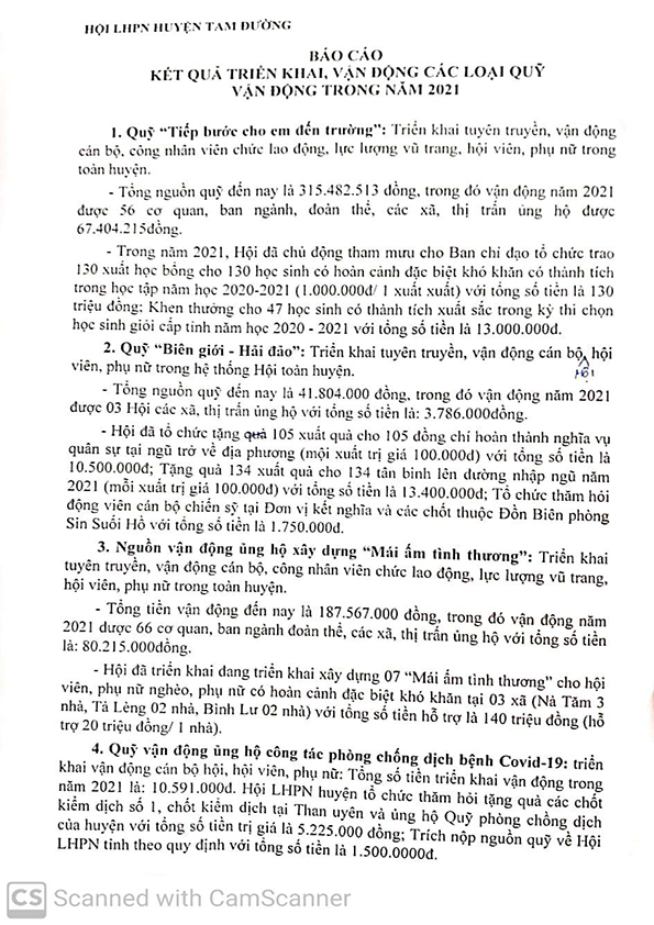 BÁO CÁO Tình hình thu, nộp Quỹ phòng, chống thiên tai trên địa bàn huyện Tam Đường năm 2021